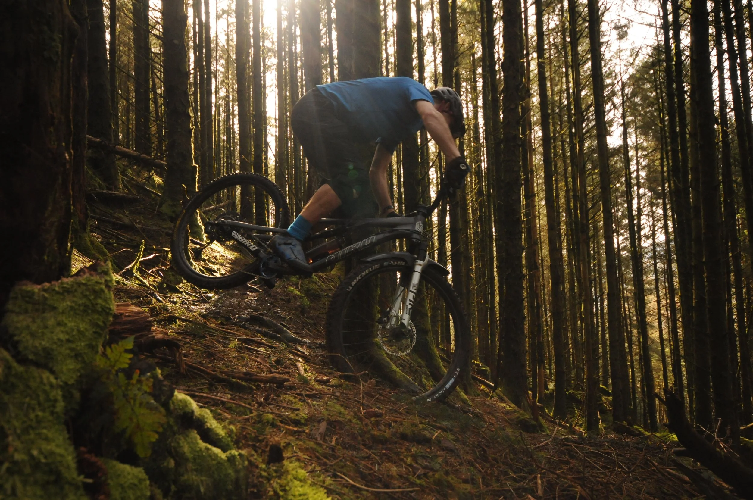 The Dyfi's demanding landscape, steep sided forested valleys and natural slate trials are just begging to be ridden aggressively. For more experienced riders, Enduro brings a more demanding edge to riding around here - steep and technical descents picking and winding though trees, roots, rocks and drops. And there's plenty of it for a biiiiiig day in the saddle. To make the most of the terrain and riding, we'd recommend bringing a bigger travel, enduro-capable full suspension bike and run larger tougher tyres – the slatey surfaces can take their toll. The same goes for you, so we'd also suggest wearing pads, gloves and good helmet for maximum enjoyment.
